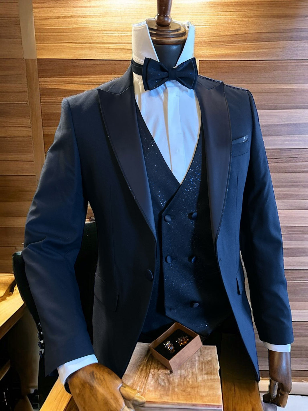 This Navy Ceremonial Suit is the Ideal Option for Formal Events, Ceremonies, and Special Occasions Since it Blends Sophistication, Versatility, and Functionality. It Features an Easily Removable Lapel and a Double-Sided Vest.