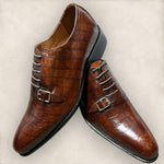 Crocodile Texture, Leather with the Monk-Strap and laces.